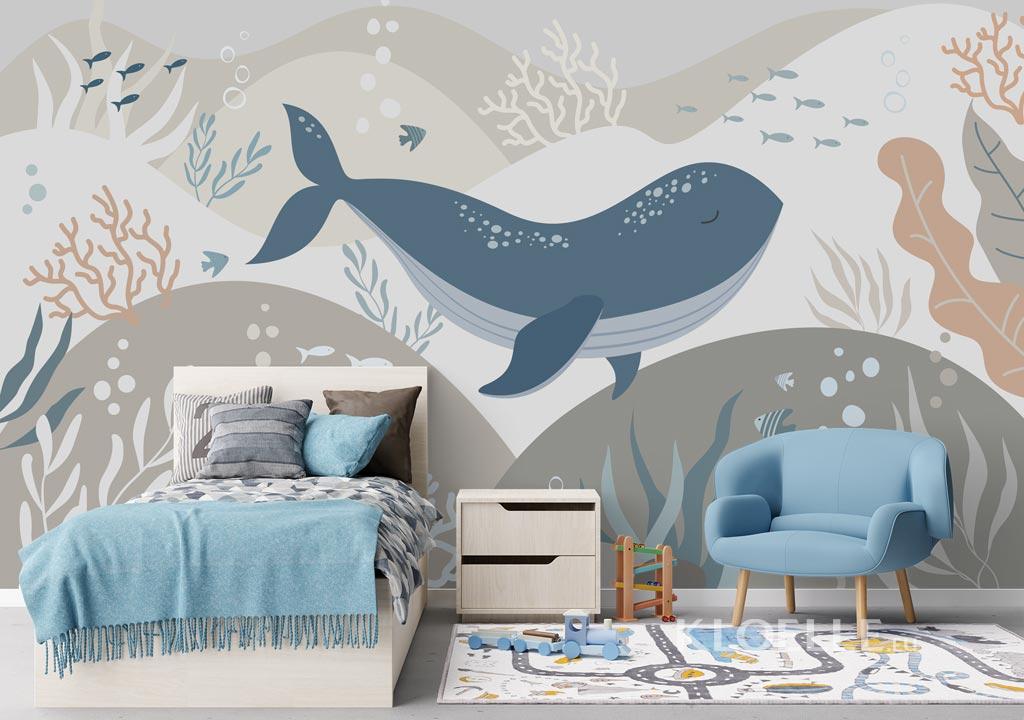 Fototapet Børneværelse Blåhval på Havets Bund | Kloelle