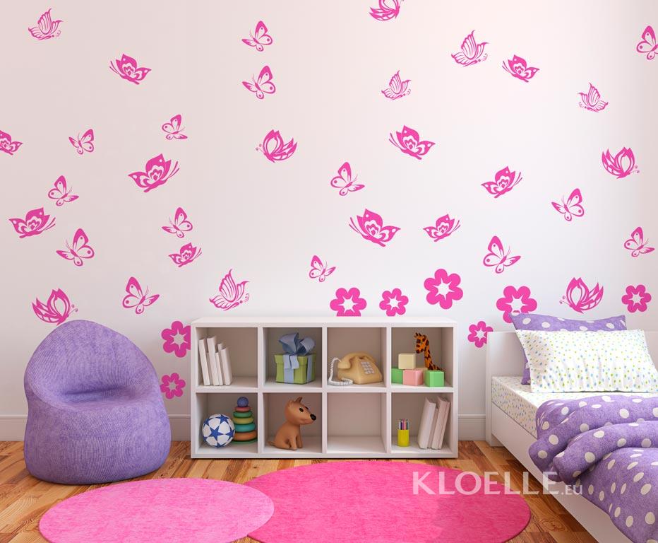 Vægklistermærker Dekorationssæt 42 Sommerfugle og 8 Blomster | Kloelle