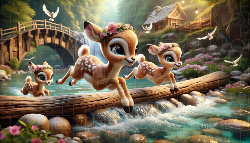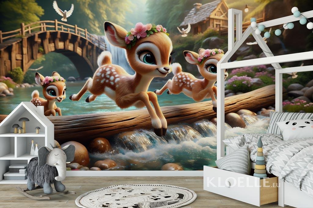 Fototapet Børneværelse Hjortekalve ved Skovbækken | Kloelle