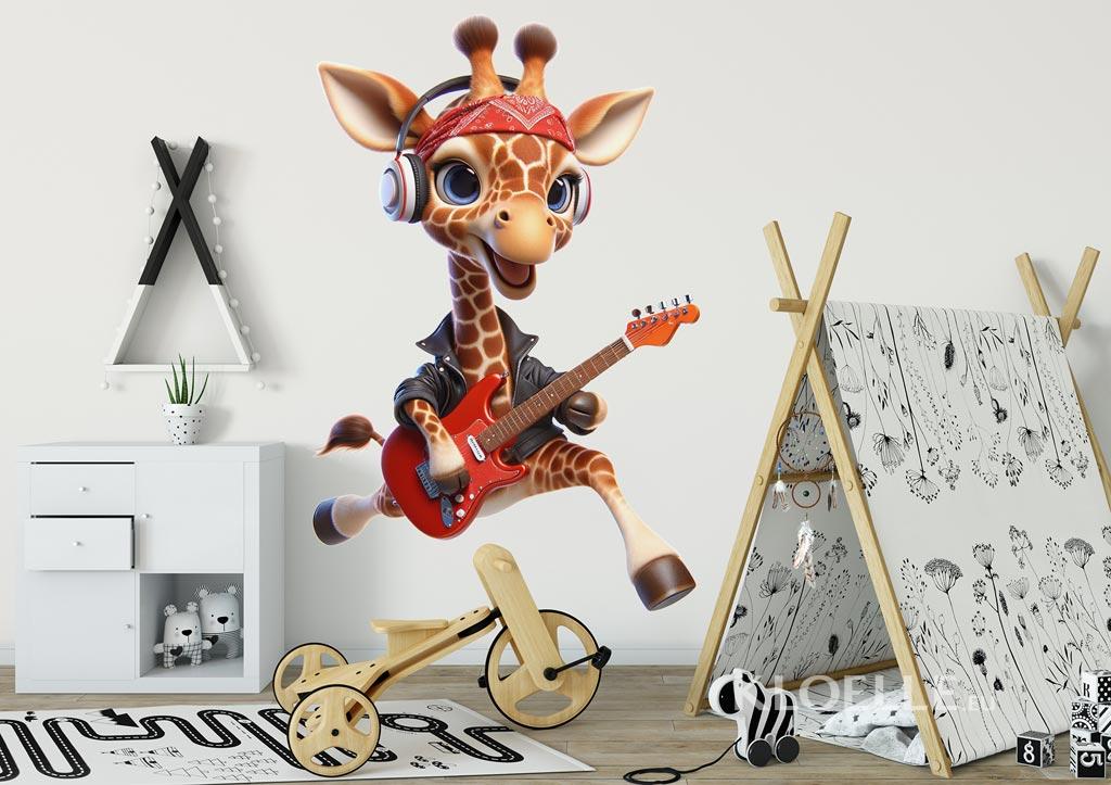 Børn Vægklistermærker Rockgiraf med Bandana | Kloelle