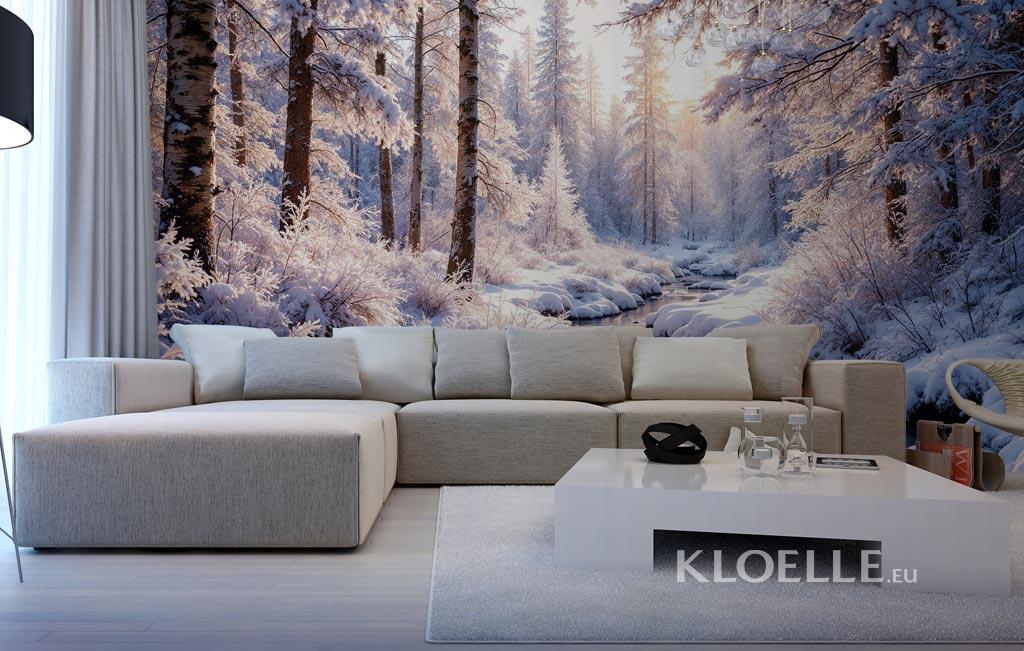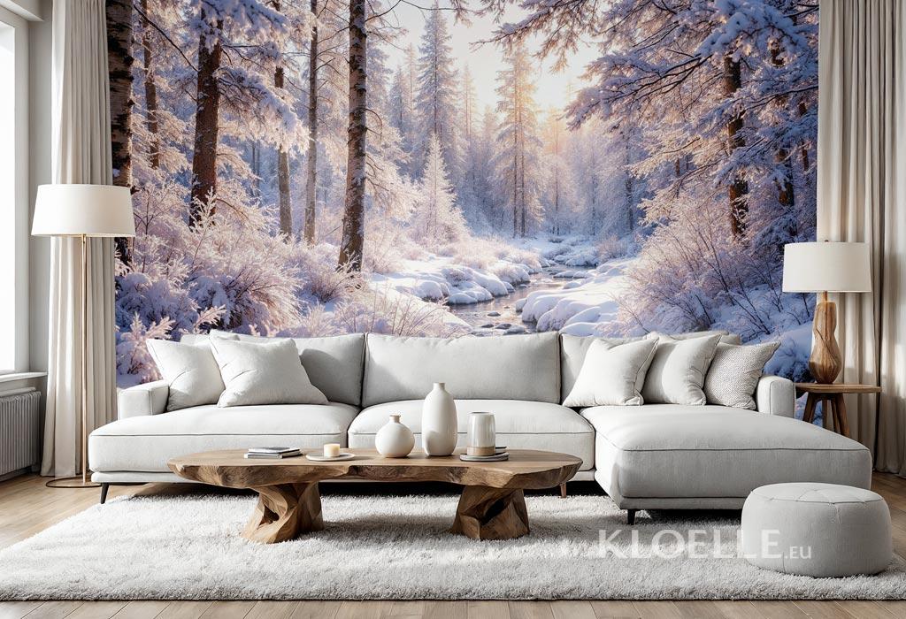 Fototapet Rosa Vinter i Skoven | Kloelle