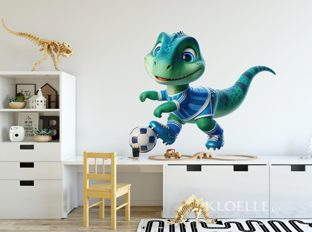Børn Vægklistermærker Sjov Dinosaur Fodboldspiller | Kloelle