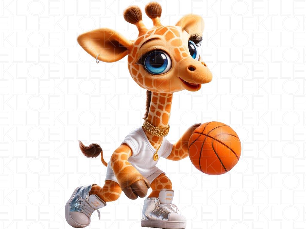 En moderne og stilfuld giraf, med sølvfarvede sneakers og en elegant guldkæde, bringer basketglæden til live på børneværelset. Mellem driblinger, adrætte skud og energifyldte bevægelser skaber denne wallsticker til børneværelset en dynamisk, legende og inspirerende stemning. En fortryllende detalje, der fremhæver værdier som teamwork, beslutsomhed og selvtillid — perfekt til at indrette små basketballfans og kommende mestre med stil og passion.