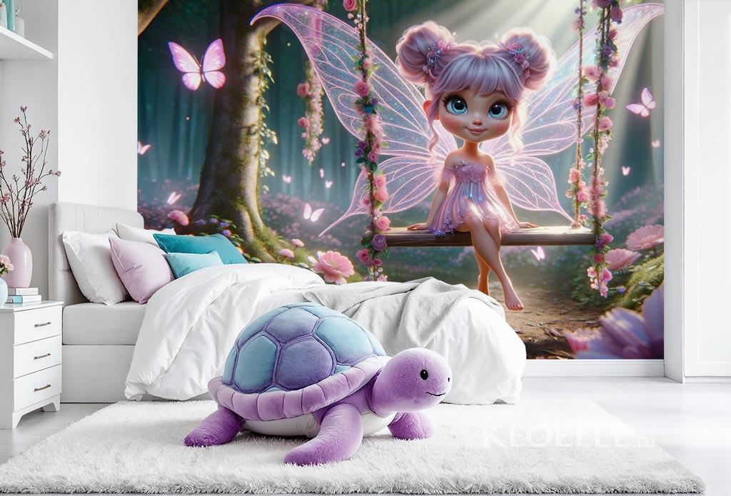 Fototapeten für Kinderzimmer Fee und Schmetterlinge im Magischen Wald | Kloelle
