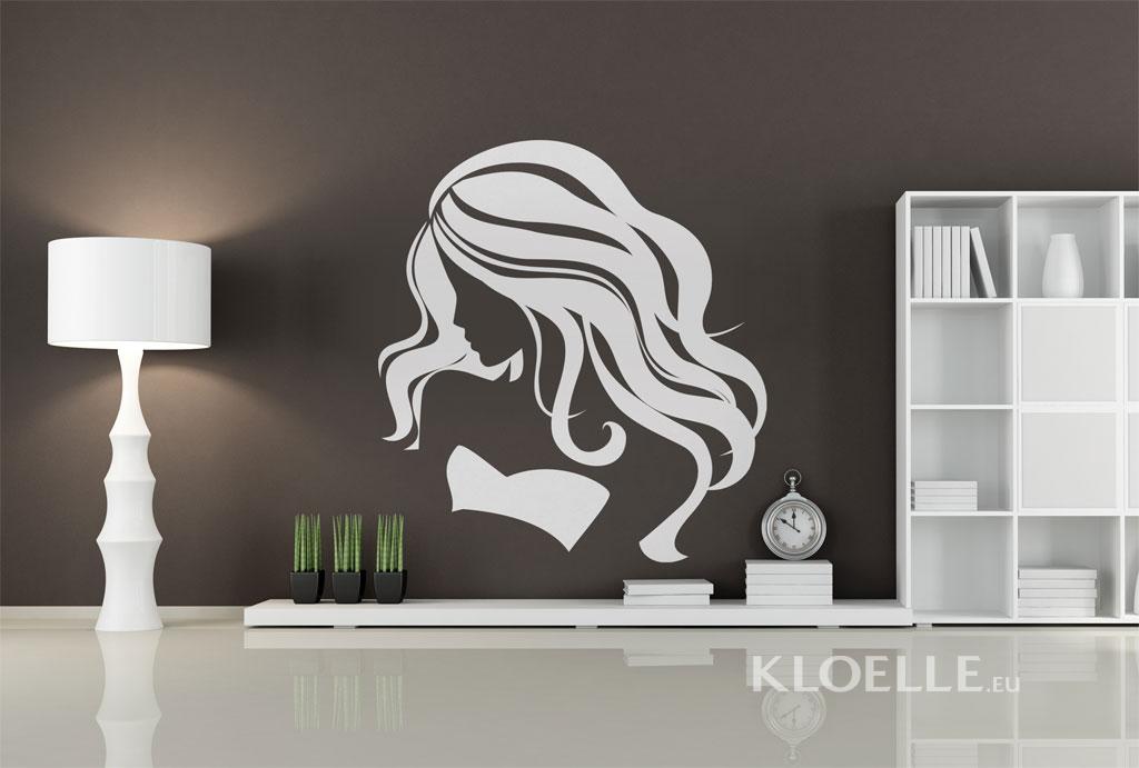 Die Strähnchen geben dem Haar schöne Farbnuancen. Fügen Sie dieses Wandtattoo dem Dekor Ihres Friseursalons hinzu, um eine neue Farbempfehlung zu machen. Das Sticker zeigt eine feminine Büste mit langen und welligen Haaren und Strähnchen.