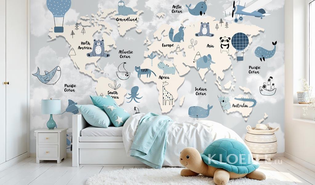 Fototapeten für Kinderzimmer Kinderweltkarte in Pastelltönen | Kloelle