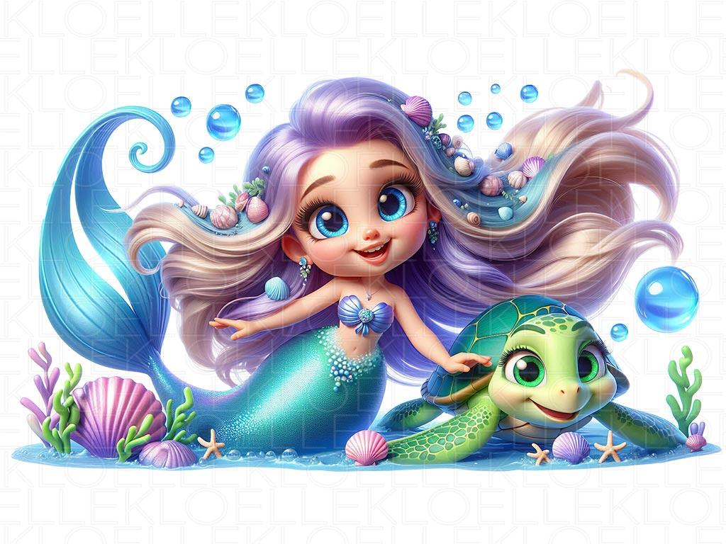 Kleine Meerjungfrau mit Grüner Schildkröte