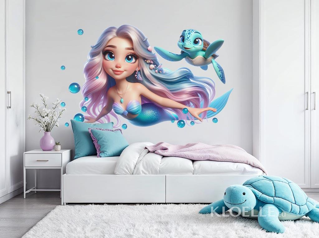 Kids Wall Stickers Adorable Mermaid Swimming with a Sea Turtle | Kloelle