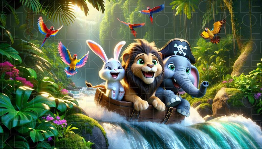 Kids' Room Wall Murals Adventure at the Tropical Waterfall with Jungle Animals | Kloelle