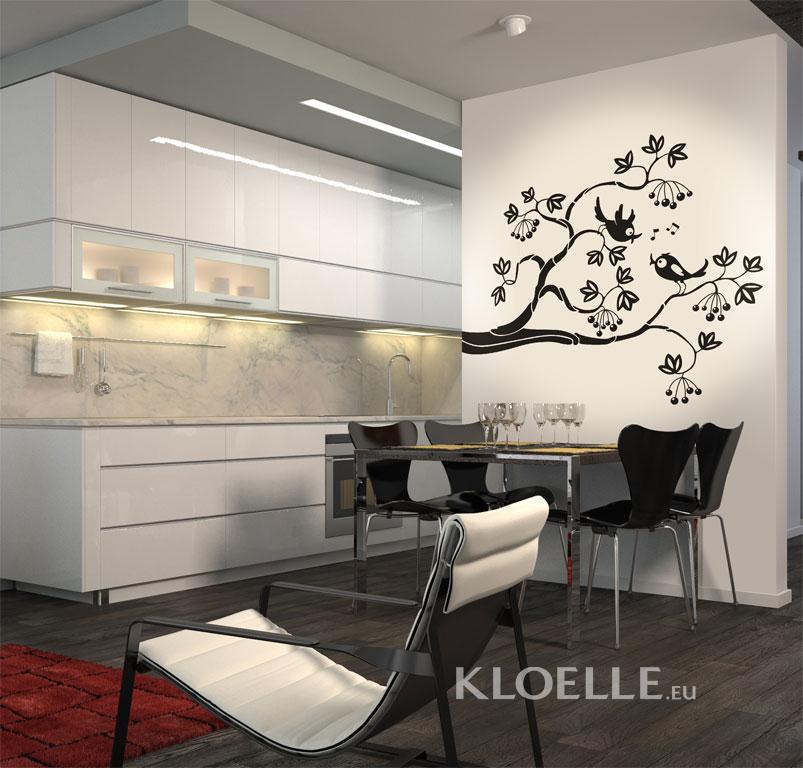 Romantic, floral wall stickers. Decorate any room with a gorgeous silhouette featuring a couple of lovey-dovey birds singing to each other while standing on a branch of elder tree.