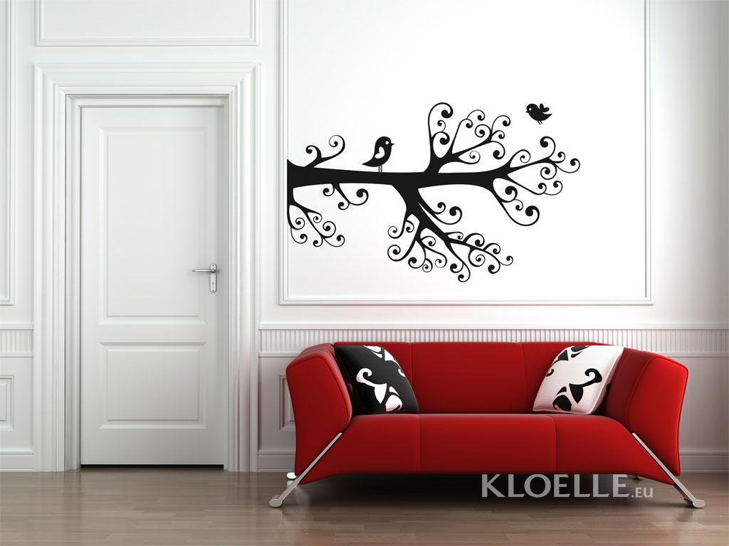 Floral, romantic wall stickers and decals, perfect for a bedroom or a fashionable living room. Abstract branch with many arabesque-style twigs and a loveful bird waiting for his small partner.