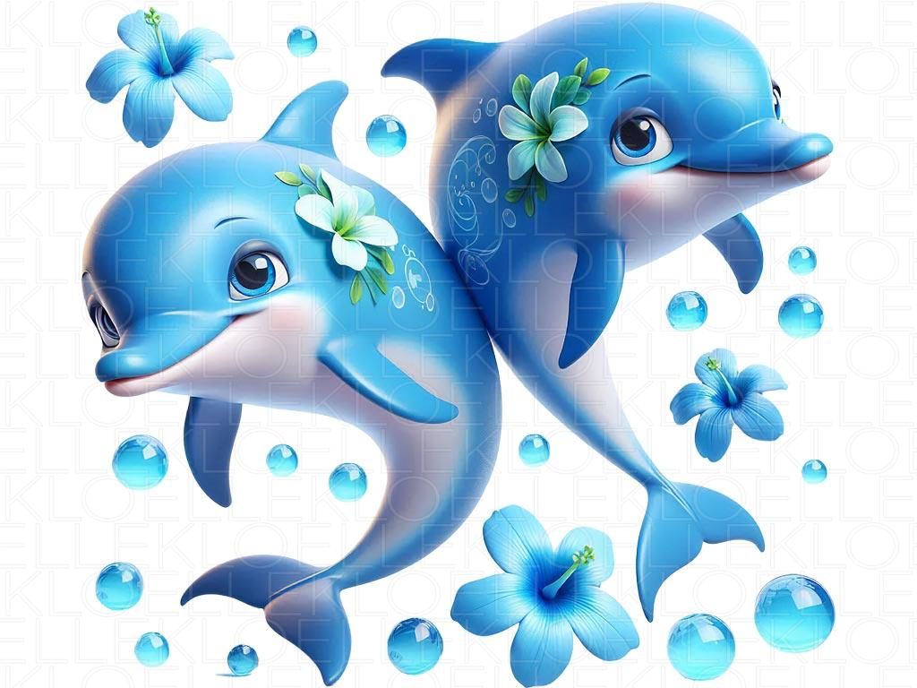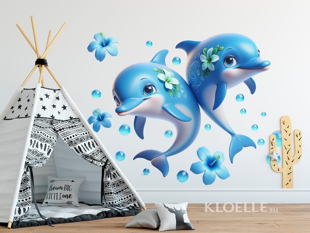 Kids Wall Stickers Dolphins with Blue Hibiscus Flowers | Kloelle