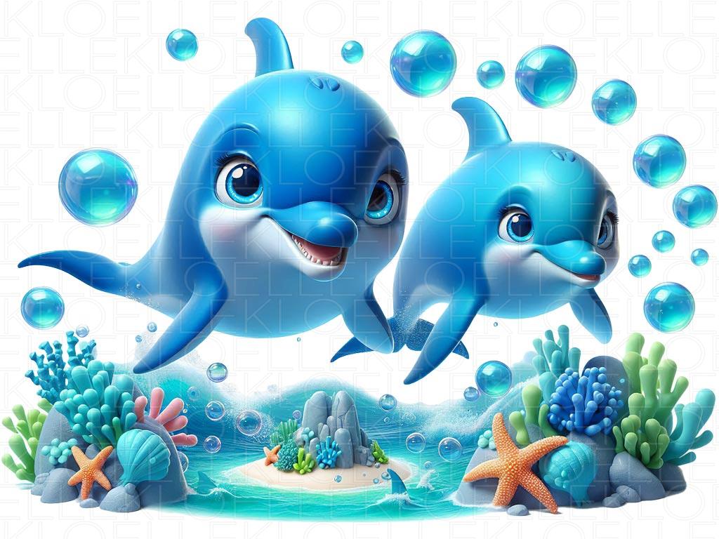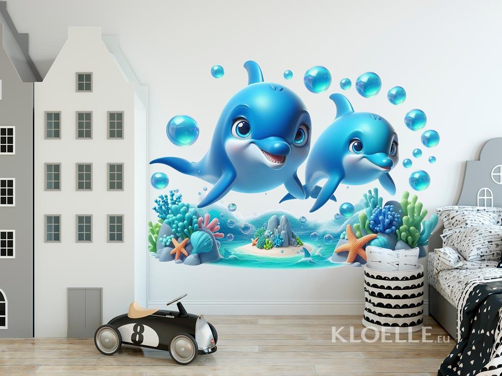 Kids Wall Stickers Happy Dolphins on a Paradise Beach | Kloelle