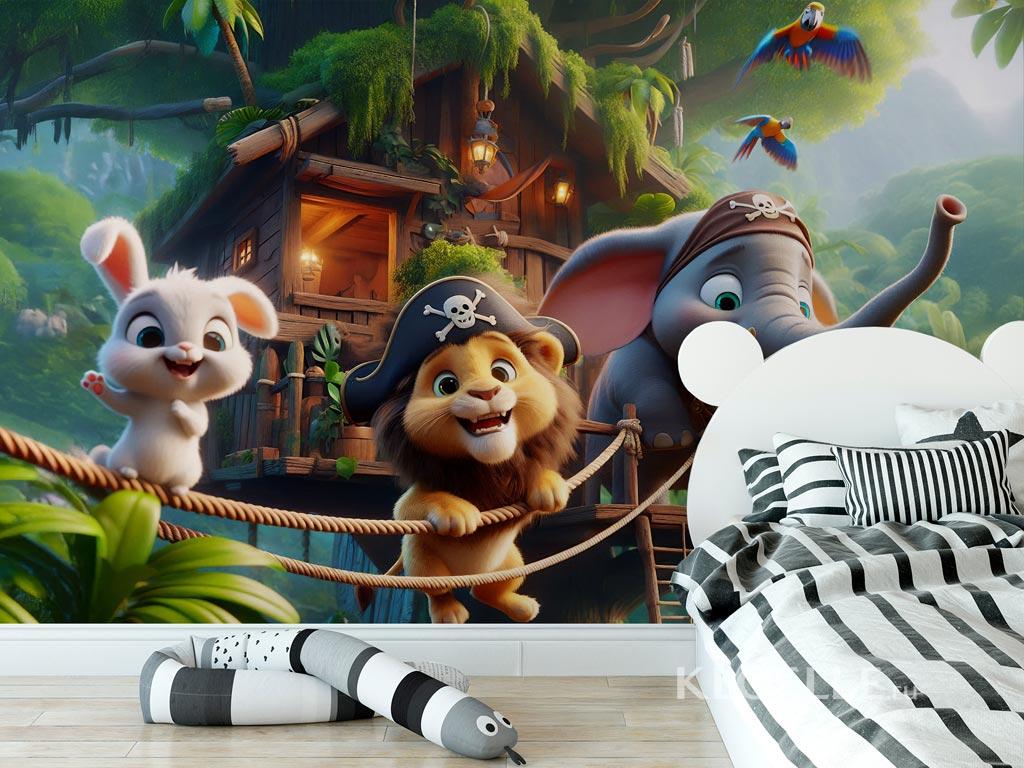 Kids' Room Wall Murals Jungle Animals in the Treehouse | Kloelle