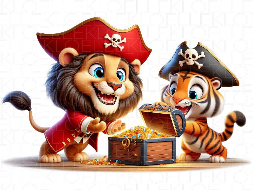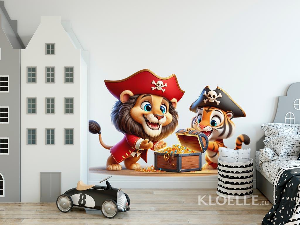 Kids Wall Stickers Lion and Tiger and the Pirate Treasure Chest | Kloelle