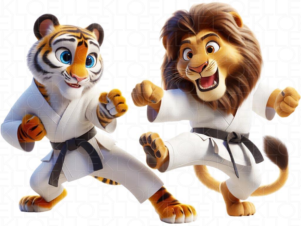 A fun and dynamic scene where a lion and a tiger face off in an exciting karate match. With ready stances, powerful kiais and high-energy moves, this friendly duel becomes a true dojo moment. With agile kicks, action-packed strikes and lots of fun, these two adorable jungle friends bring adventure and excitement to any space. Perfect for little karate fans and animal lovers, these wall stickers for kids' room capture the spirit of friendly competition, shared discipline and creative imagination. An epic moment that transforms children's rooms into vibrant arenas of fun, colour and inspiration!
