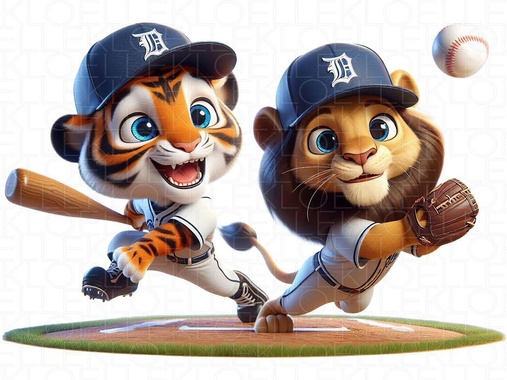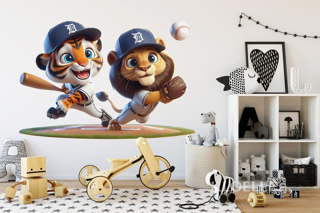 Kids Wall Stickers Lion and Tiger Playing Baseball | Kloelle