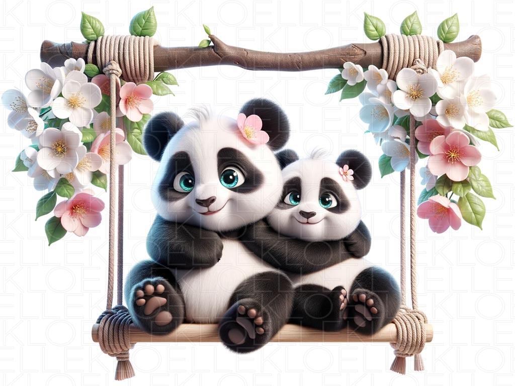 Pandas on Floral Swing