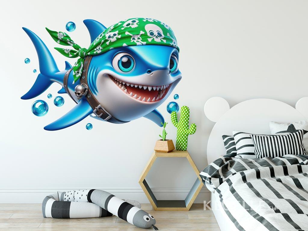 Kids Wall Stickers Pirate Shark with Green Bandana | Kloelle