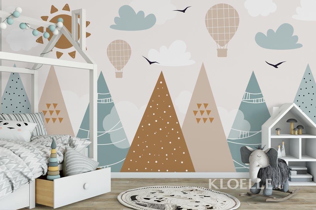 Kids' Room Wall Murals Scandinavian Alps in Pastel Green and Beige | Kloelle