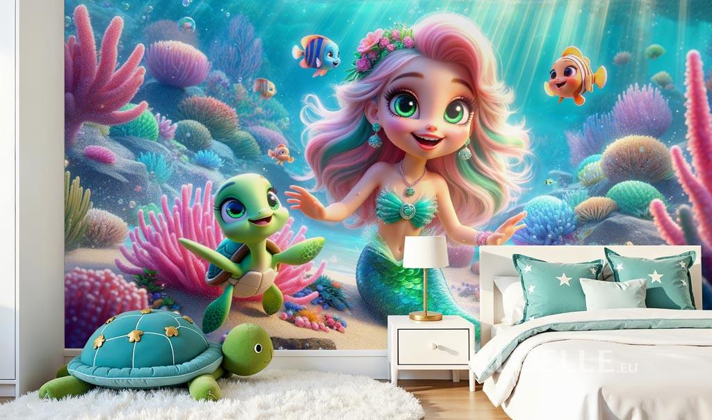 Kids' Room Wall Murals Sweet Mermaid and the Green Sea Turtle | Kloelle