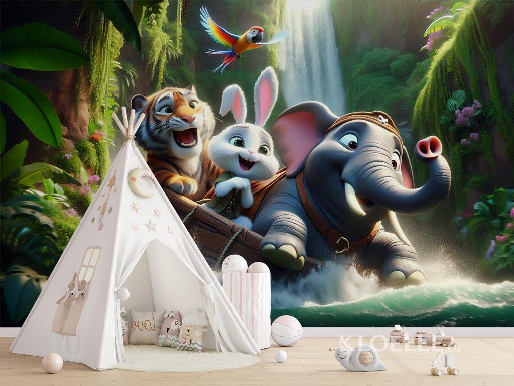 Kids' Room Wall Murals Tiger, Elephant and Bunny at the Tropical Waterfall | Kloelle