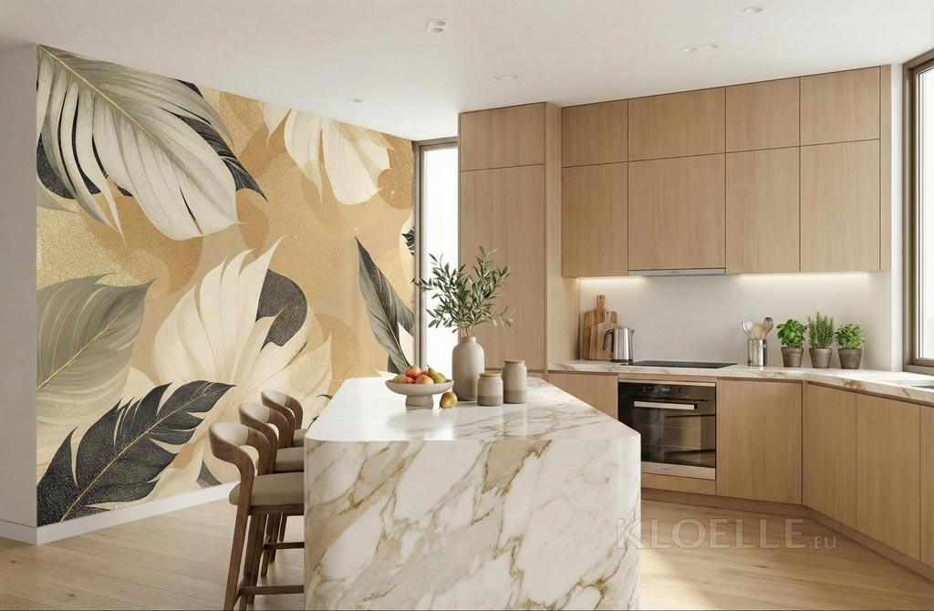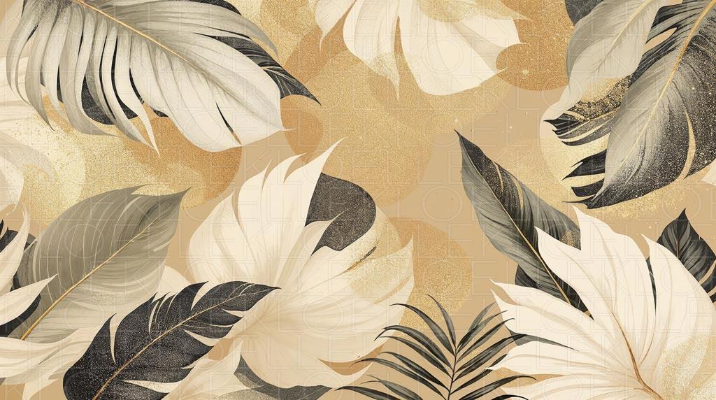 Tropical Leaves in Golden Tones