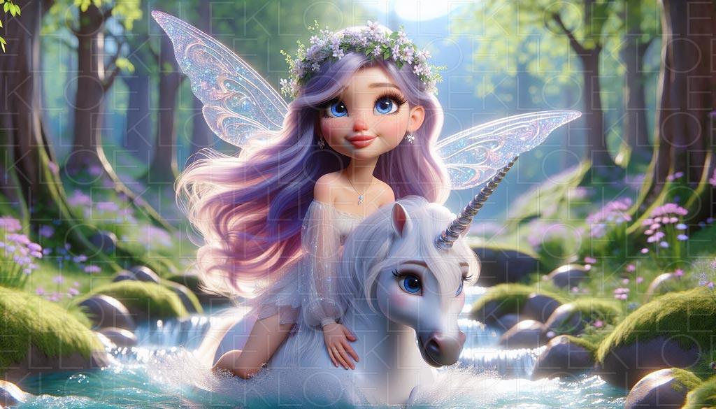 White Unicorn and the Forest Flower Fairy