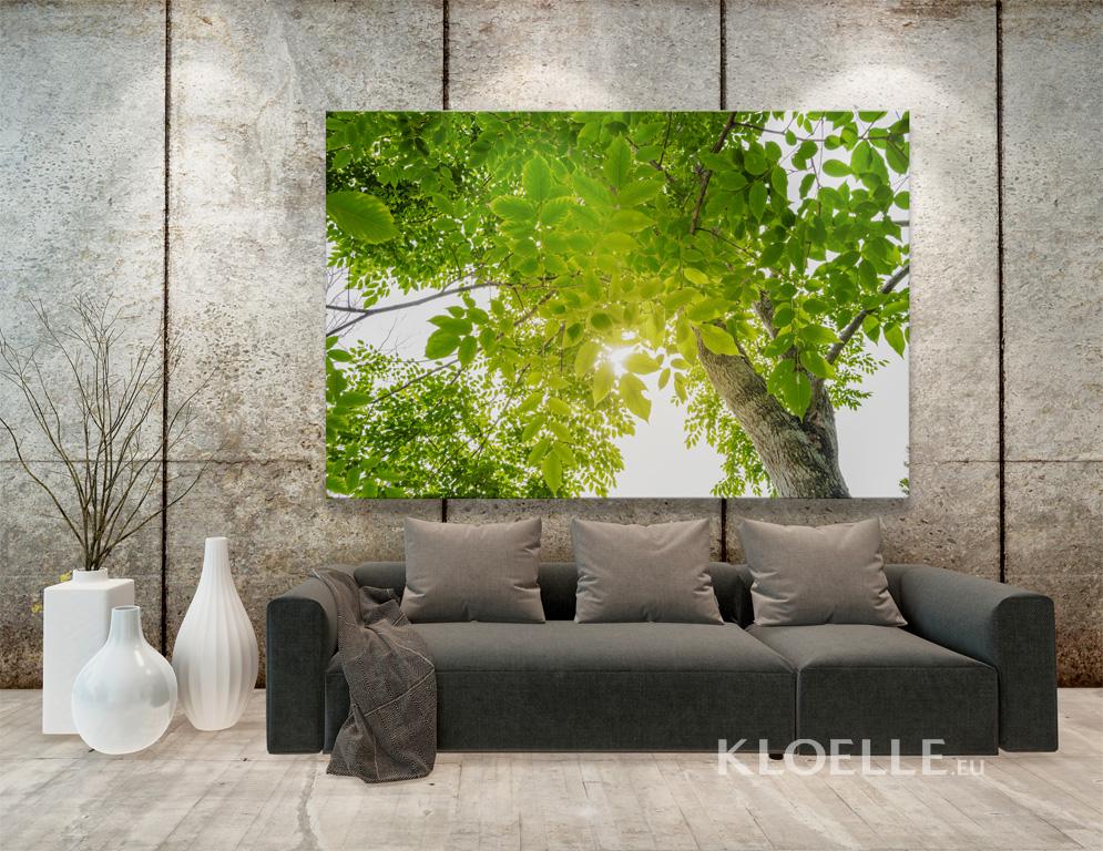 La sombra de un árbol es algo maravilloso. Escucha el viento soplar y los pájaros gorjear y ve como la luz solar hace un esfuerzo para llegar hasta ti. Recrea esa sombra en tu casa con un fotomural o póster personalizado para una pared. Añade a la decoración de una sala de estar o dormitorio la copa de un árbol frondoso que intenta ocultar el poderoso Sol.