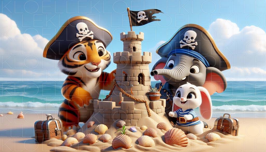Castillo de Arena con Elefante, Tigre y Conejito
