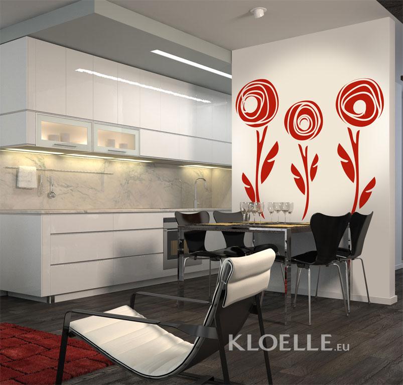 Vinilos decorativos para paredes que quedarán estupendos ya sea en un dormitorio, un salón o una cocina. Dále un toque floral a la decoración moderna o surrealista de tu habitación con unos autoadhesivos en los que tres botones abstractos de rosa se preparan para florecer.