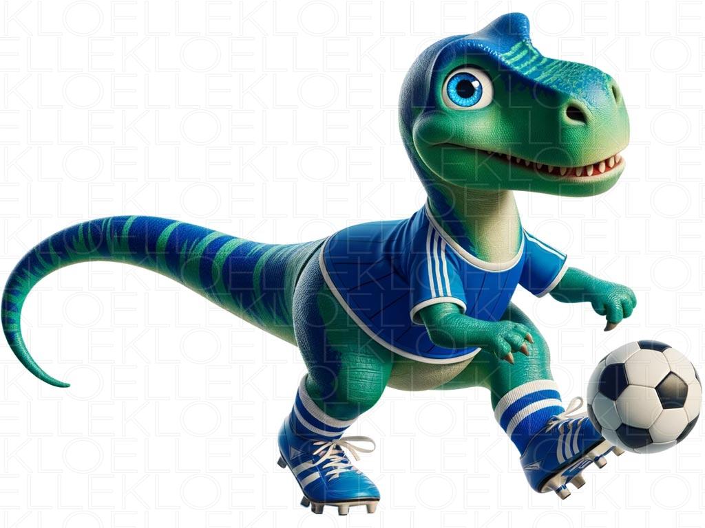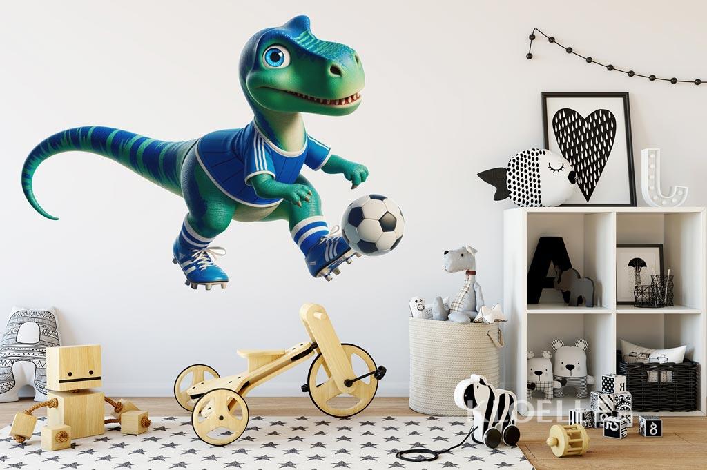 Stickers Muraux Enfants Dinosaure Bleu et Vert Jouant au Football | Kloelle