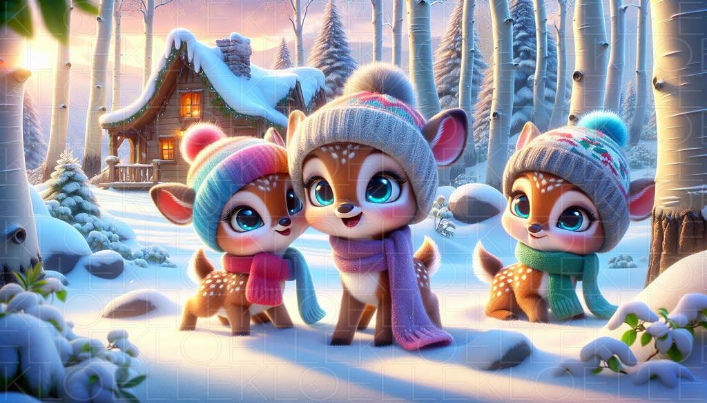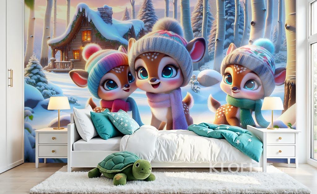 Papier Peint Chambre Enfant Faons dans la Forêt Enneigée | Kloelle