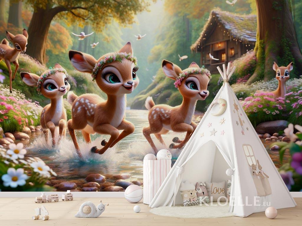 Papier Peint Chambre Enfant Forêt au Printemps avec des Chevreuils | Kloelle