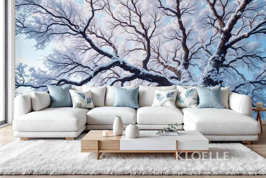 Papier Peint Photo Grand Arbre Couvert de Neige | Kloelle