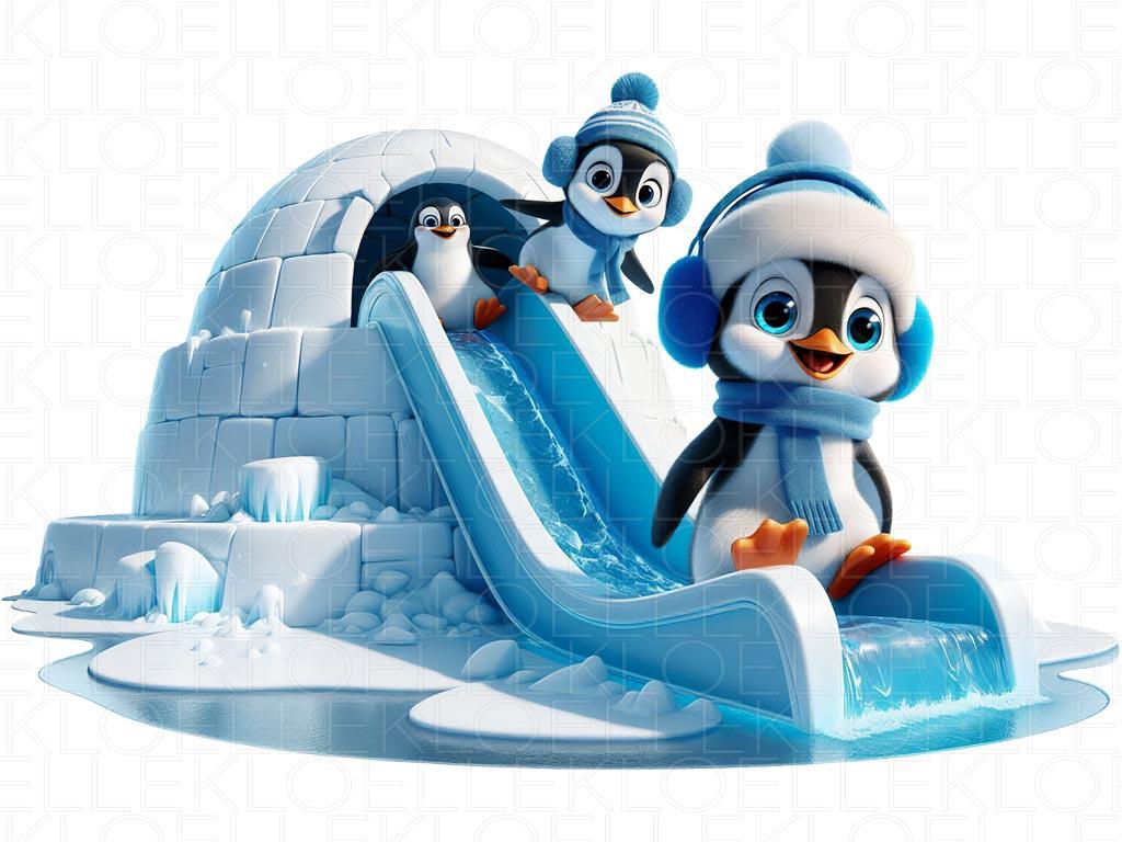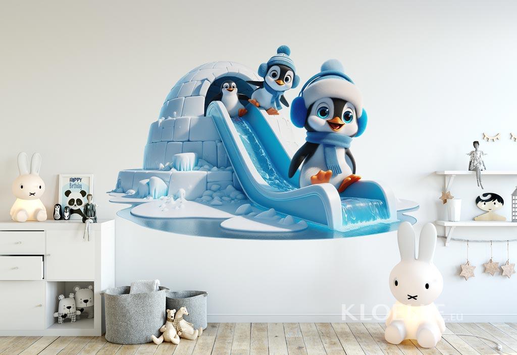 Stickers Muraux Enfants Manchots et Igloo avec Toboggan Aquatique | Kloelle