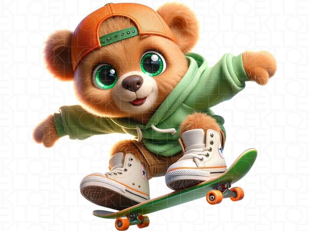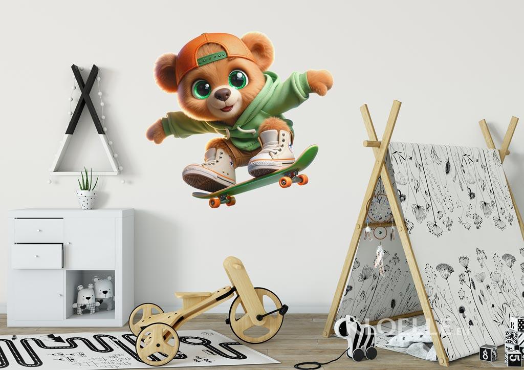 Stickers Muraux Enfants Ourson en Peluche et sa Planche de Skate | Kloelle