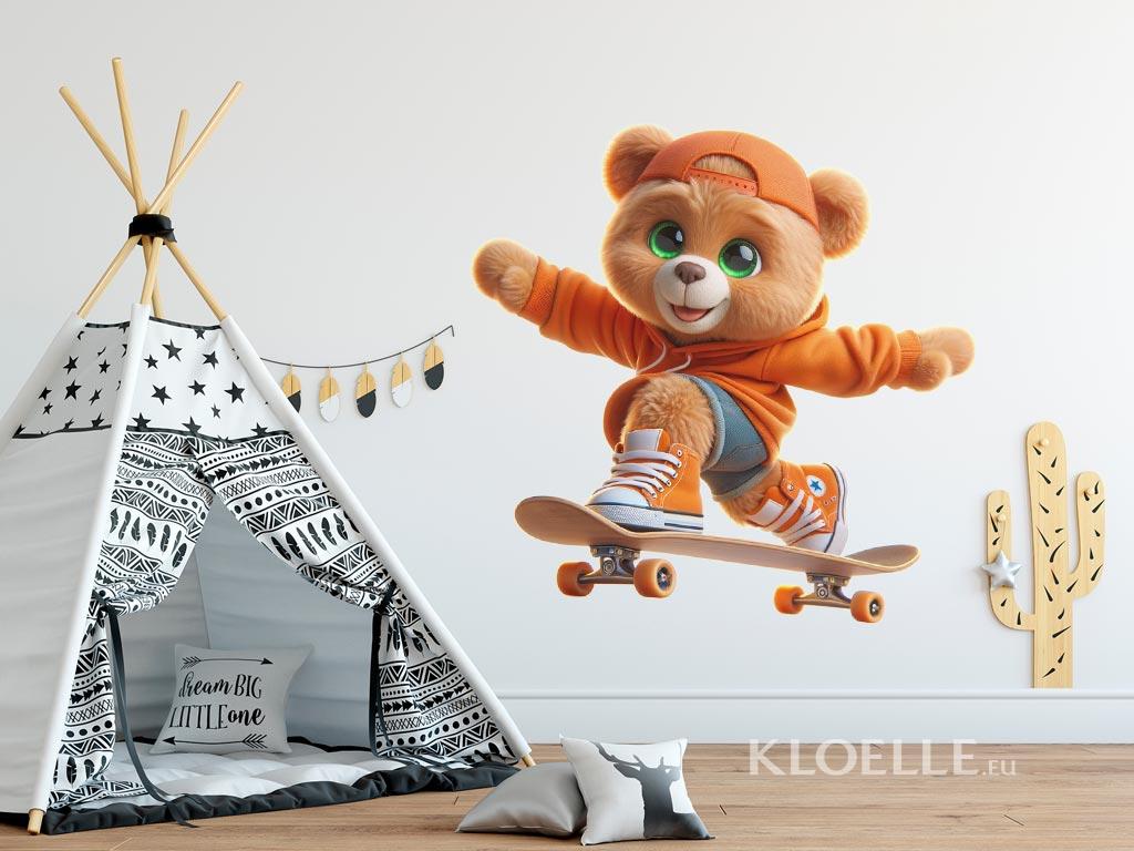 Stickers Muraux Enfants Ourson Skateur | Kloelle