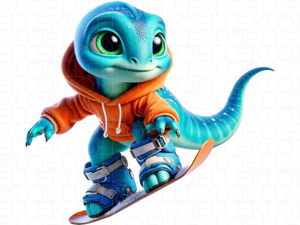 Stickers Muraux Enfants Petit Dinosaure Bleu en Snowboard | Kloelle