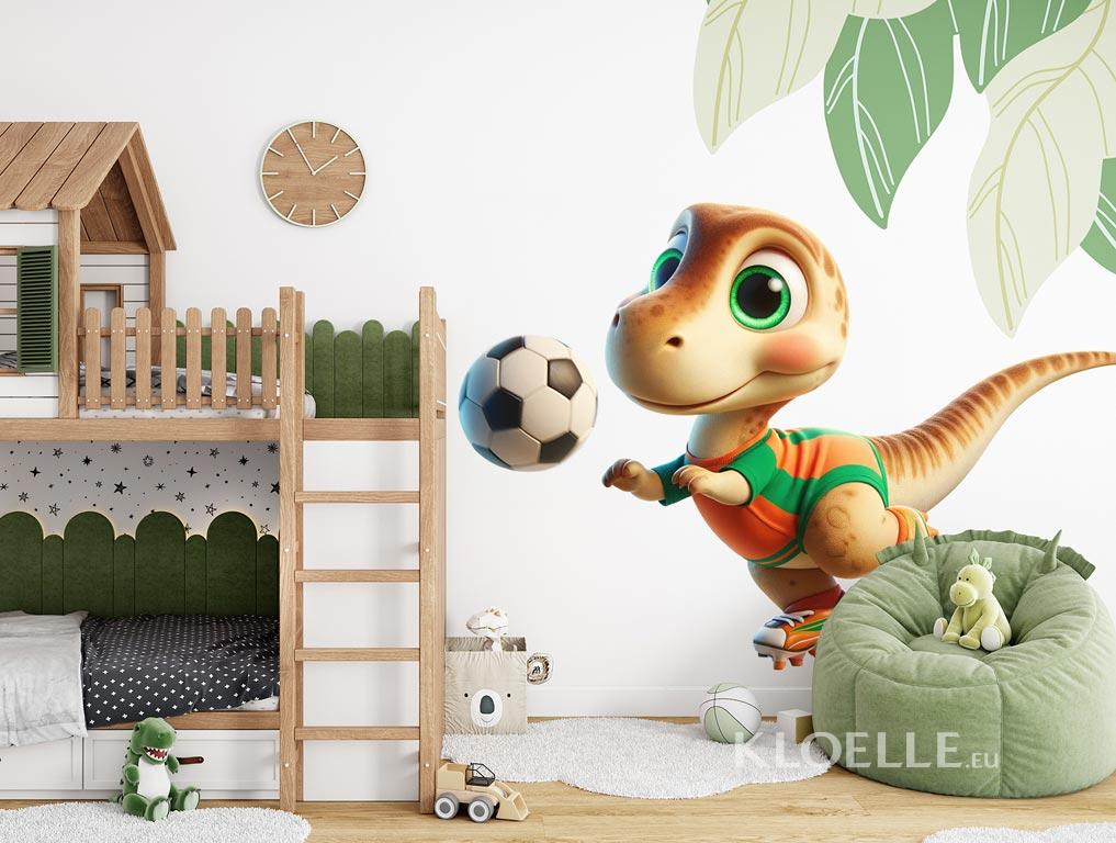 Stickers Muraux Enfants Petit Dinosaure Joueur de Football | Kloelle