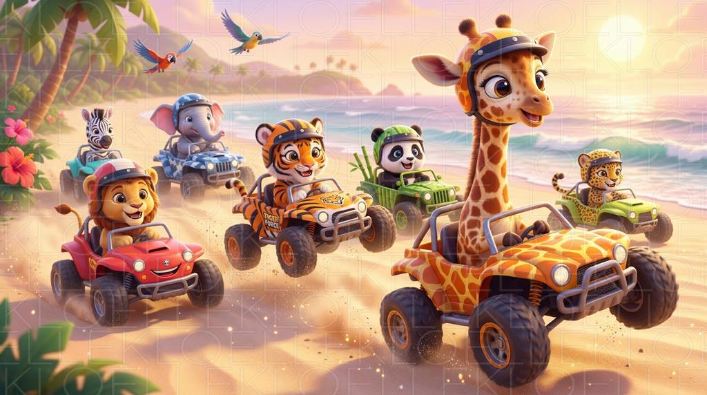Avventura Tropicale sulla Spiaggia con Animali della Giungla