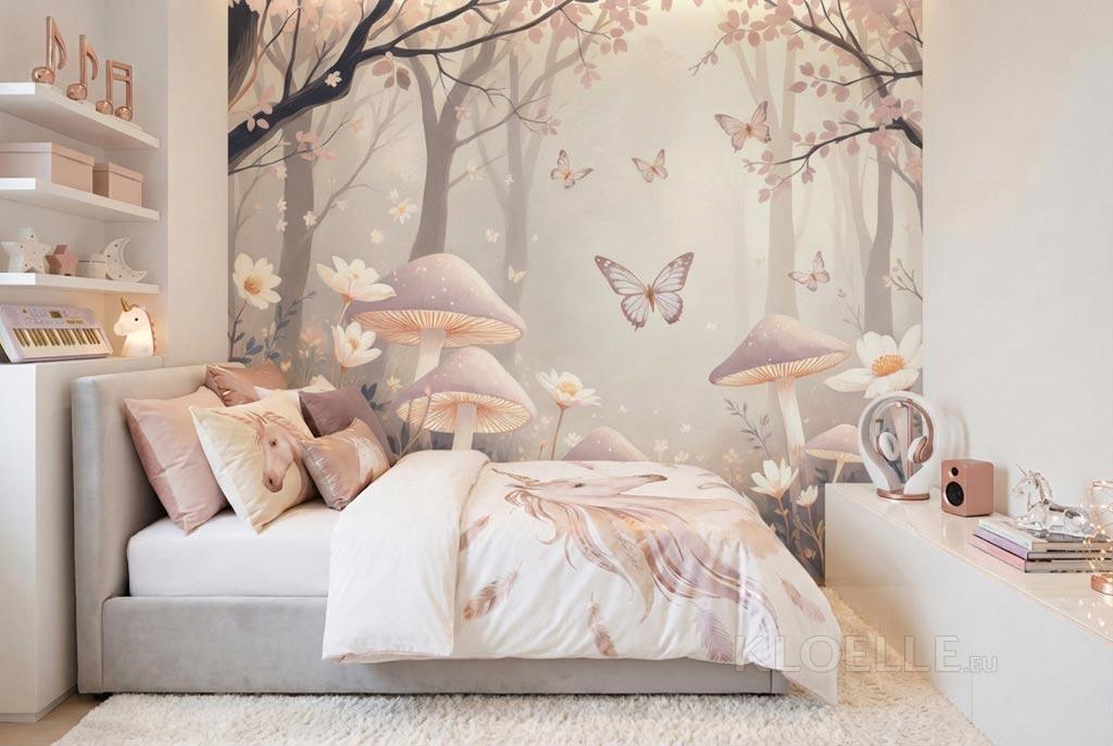 Bosco Incantato con Fiori e Farfalle dai Toni Pastello