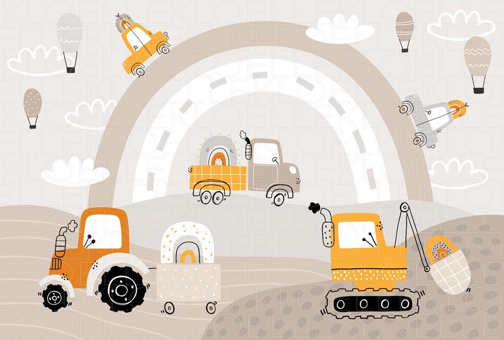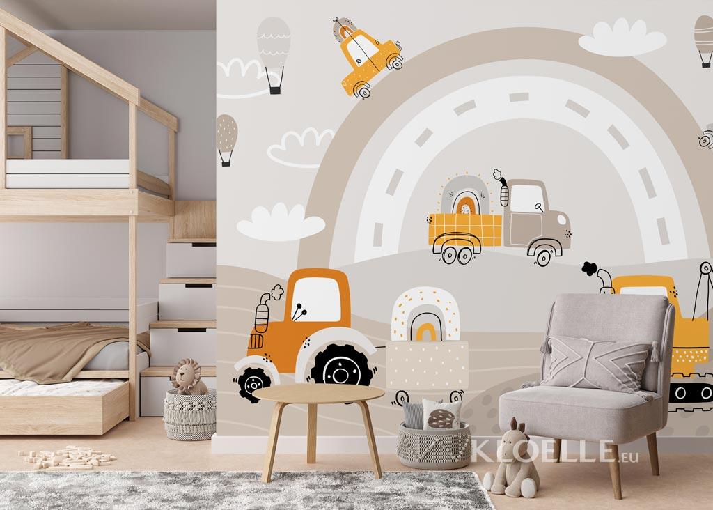Fotomurali per Cameretta Bambini Città delle Macchinine in Toni Beige Delicati | Kloelle