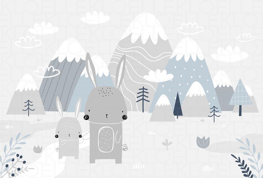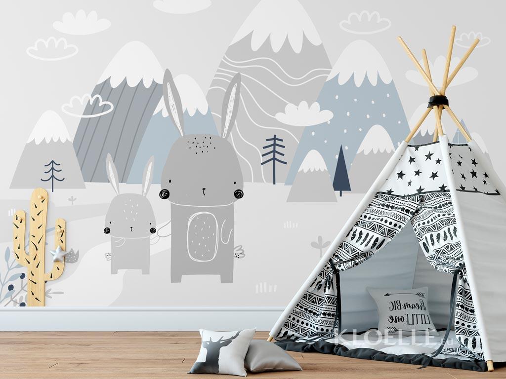 Fotomurali per Cameretta Bambini Coniglietti sulle Alpi Scandinave | Kloelle