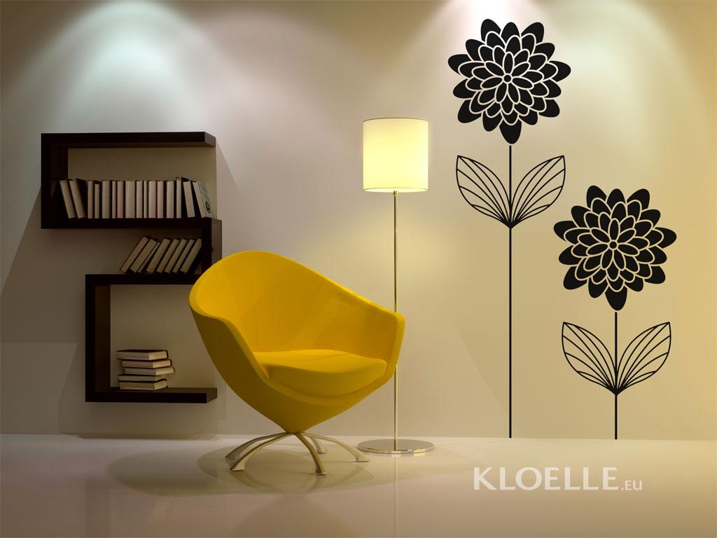 Aggiungi fiori all'arredamento di un soggiorno o sala da pranzo con l'aiuto delli nostri adesivi murali floreali con disegni esclusivi. Applica su una parete bianca e pulita queste due bellissime dalie piene di petali.