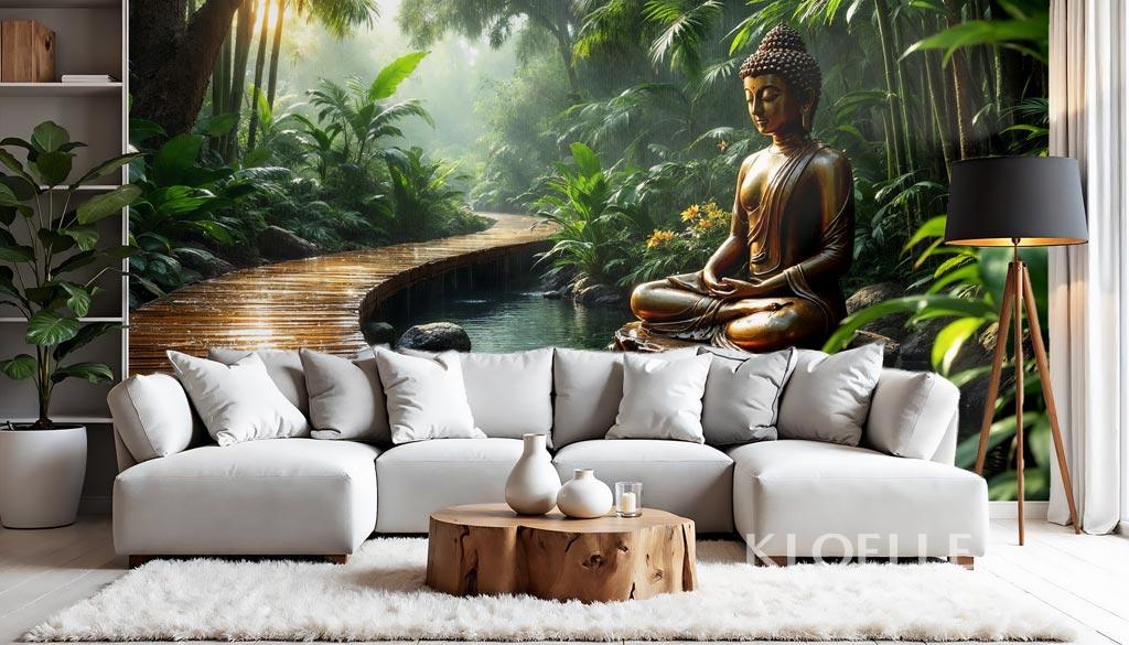 Fotomurali Foresta Tropicale Con Statua Di Buddha | Kloelle