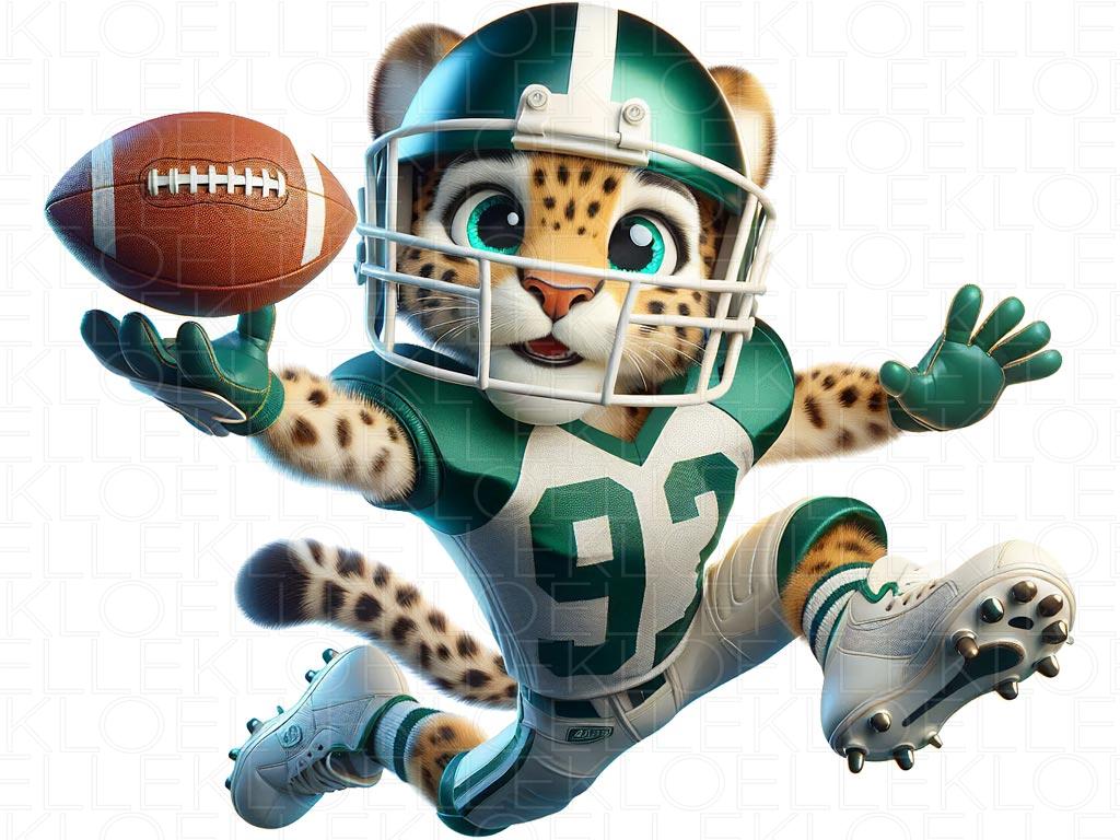 È il momento della grande azione, e tutta l’attenzione è su di lei. Un ghepardo veloce ed elegante — vero atleta del football americano — salta con un’agilità straordinaria, il corpo completamente disteso in aria e gli occhi puntati sul pallone. È molto più di una ricezione: è l’istante in cui velocità, precisione e istinto si fondono in un momento leggendario. Questo adesivo da parete, ricco di stile e movimento, trasforma la cameretta in un vero campo d’azione, dove l’adrenalina del gioco si incontra con la fantasia dei più piccoli.