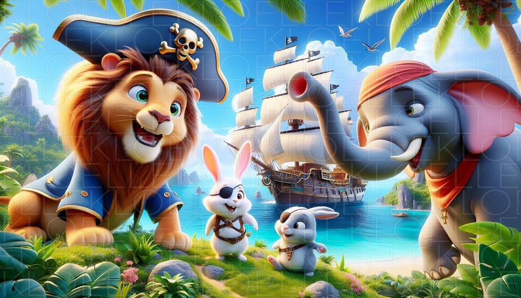 Leone ed Elefante Pirata sulla Spiaggia del Tesoro