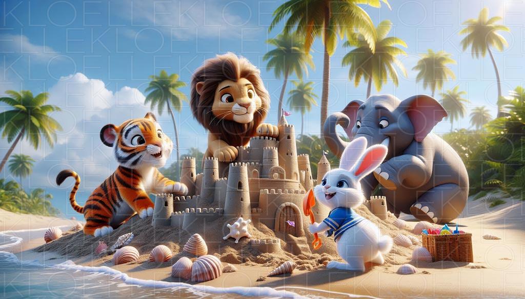 Fotobehang Kinderkamer Jungledieren en het Grote Zandkasteel | Kloelle