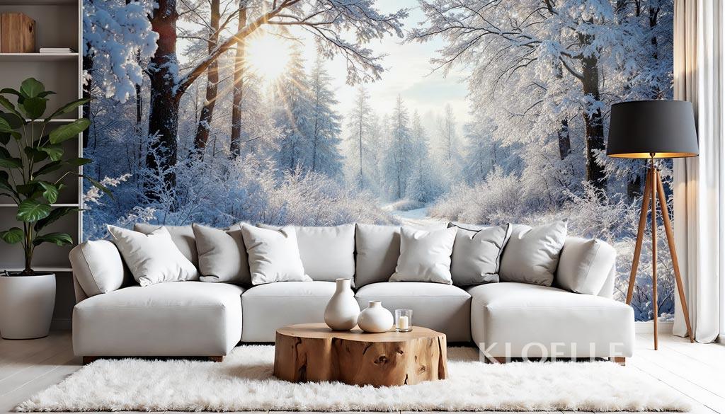 Fotobehang Zonnige Dag in het Besneeuwde Bos | Kloelle